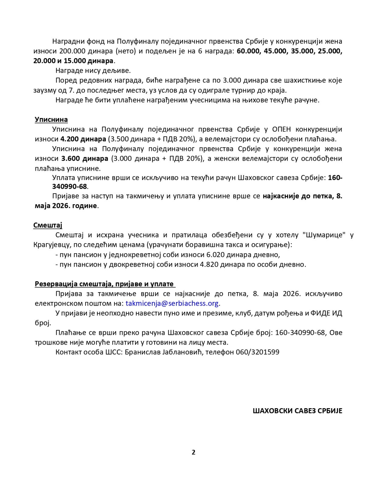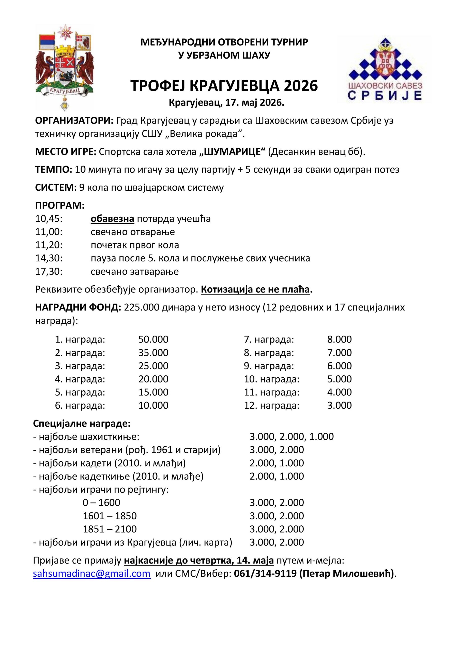 КУП Шумадије 2026 распис