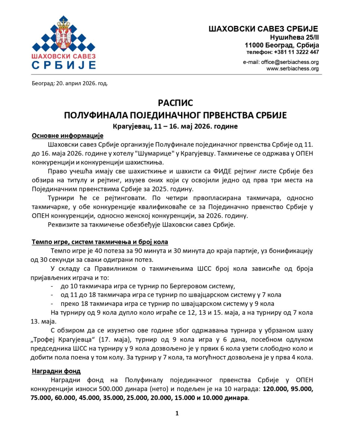 Дана 26.04.2026. год. са почетком